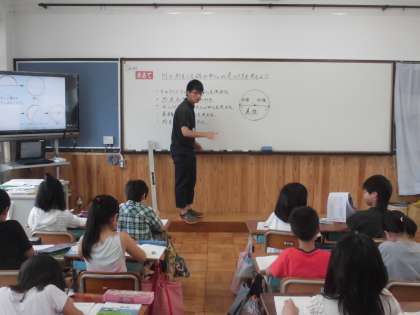 算数の時間に,「円と球」の学習をしています。円について学習していました。