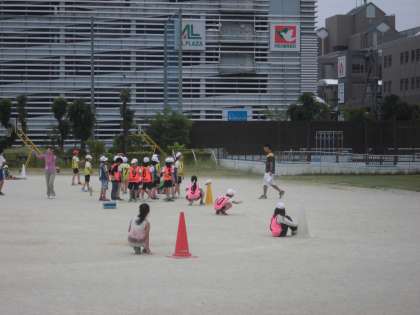 体育の時間に,「リレー」を学習しています。今日は,班対抗リレー大会をしていました。