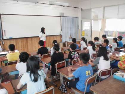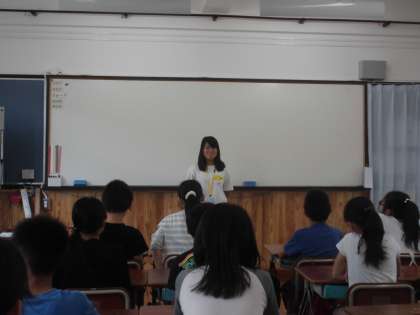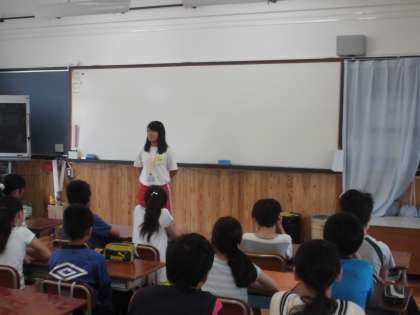 今日は,初めての6年生での実習です。6年生の前で,自己紹介をしています。緊張しながらも,上手に自己紹介をしてくれました。