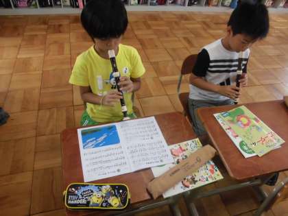 音楽の時間に,「マイ ボニー」を学習しています。今日は,リコーダー練習をしていました。