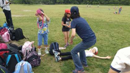 梅小路公園に,到着しました。梅小路公園で、遊んだり、休憩したりしています。