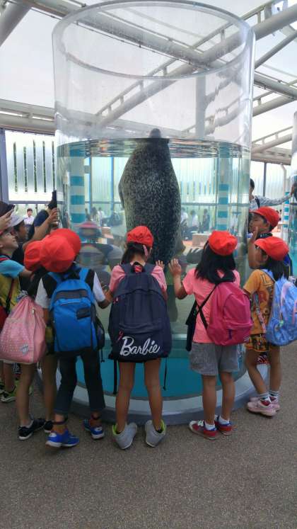 只今,水族館を見学しています。「ゴマアザラシ大きいな〜!」と感嘆の声をあげています。
