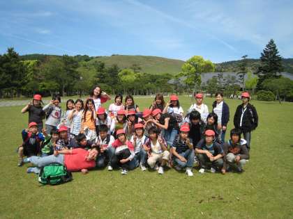 先生がクラス写真の際,寝そべってしまい,しかのふんが服に・・・??また,有名なせんとくんにも出会いました。