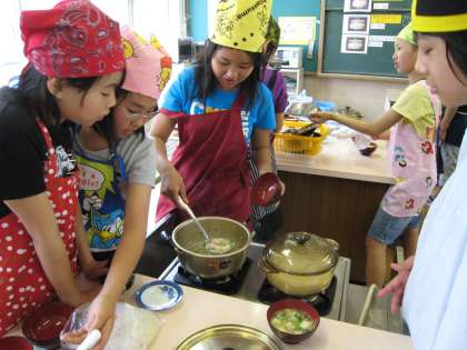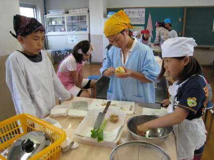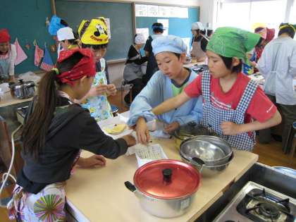 調理は,5年生の時に長期宿泊・自然体験学習を経験しているので慣れたものですが,栄養や調味料の分量などを家庭科として勉強するため,みんな楽しい中にも少し慎重に実習していました。