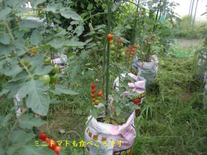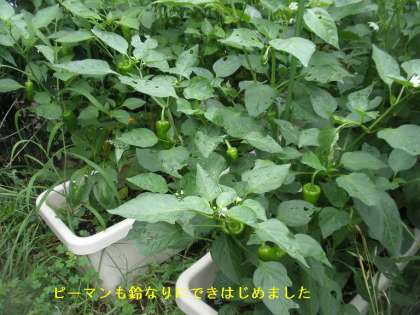 ピーマン・ミニトマトが鈴なり状態です。