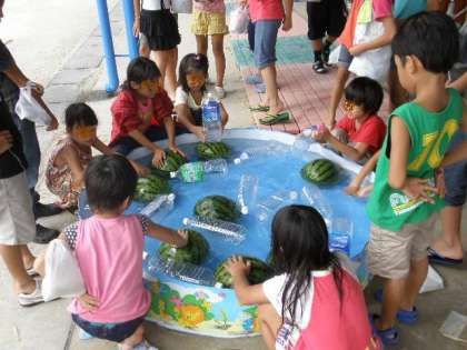 今年もPTA・おやじの会共催で「夏休みプール遊び」を開催していただくことになりました。この会は子どもたちばかりでなく,大人の方も一緒に楽しく活動していただくことをねらいとしています。
