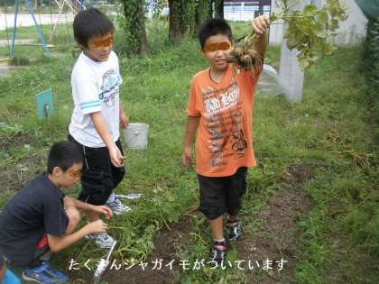 放課後に最後のじゃがいもの収穫をしました。大きくなって立派なじゃがいもがたくさんとれました。