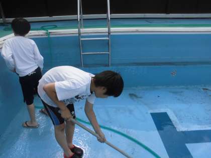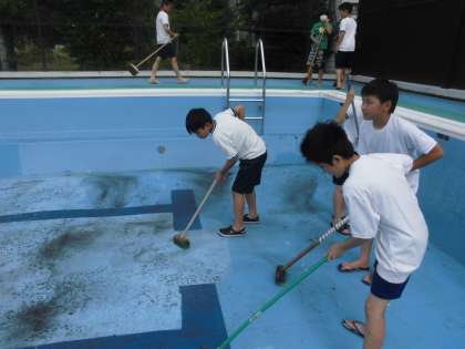 6年生と教職員で,プールの清掃をしました。プールが,とてもきれいになりました。