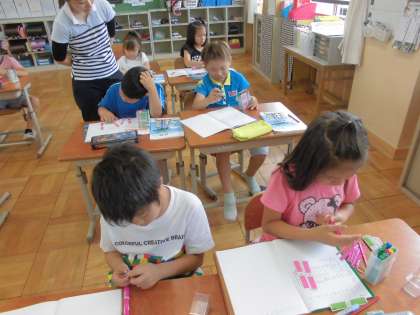 数え棒などを使ってひき算のひっ算の仕方をみんなで考えていました。