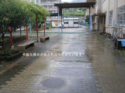 三者懇談会がはじまった2時前には,少し小降りになっていますが,まだまだ安心できません。学校も排水の許容量をこえてあふれ出しているところもあります。ご家庭でも,地域でも十分水災害にご注意ください。