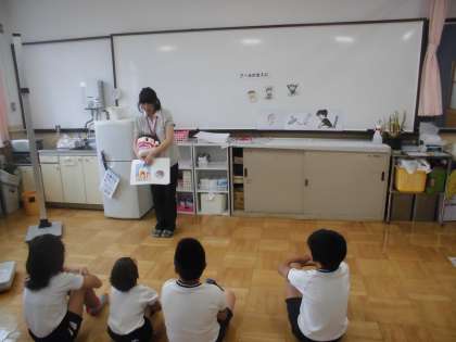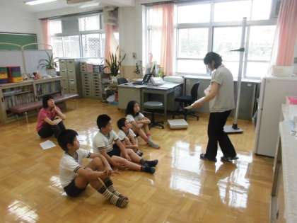 身体計測の前に,歯についてのお話をしてもらっています。