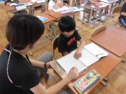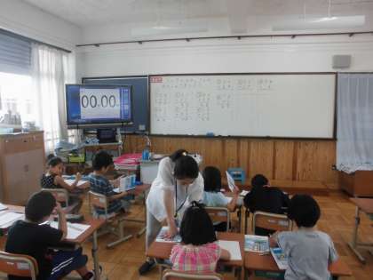 算数の時間に,「たし算」を学習しています。今日は,たし算の筆算の仕方を学習していました。