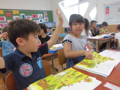 教科書の挿絵を見ながら,「だれが」「どうした」を考えました。