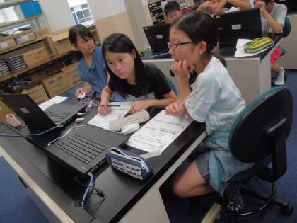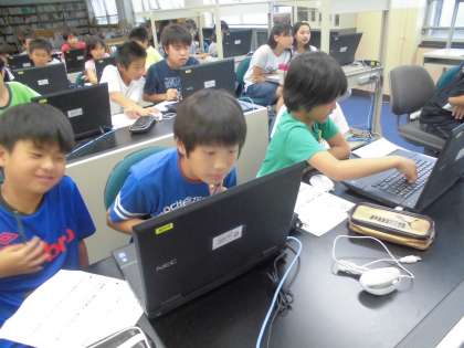 体のどこで酸素を取り入れ,二酸化炭素を出しているか,コンピュータなどを使って調べました。