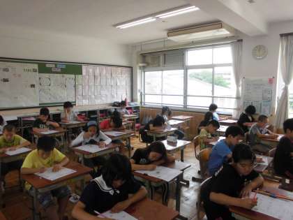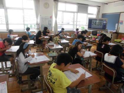 算数の時間に,「小数」を学習しています。今日は,まとめのテストをしていました。