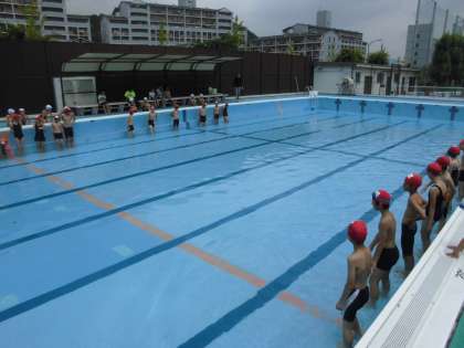 6年生から,水泳学習の約束を教えてもらっています。