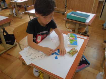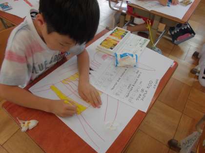 自分の考えた「〇〇などうぶつ」にぴったりな色,線の太さや長さなどを考えました。