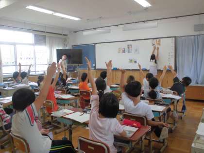 挿絵の並び替えをしながら,お話の大体をつかむ活動を行いました。