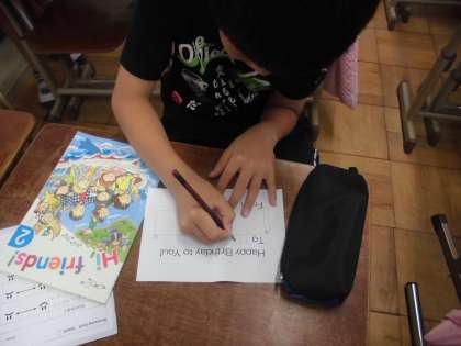 外国語活動の時間に,「誕生日」をたずねる表現について学習していました。