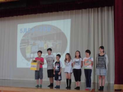 6月は計画委員会の発表でした。熊本の大地震をうけて,自分たちにできることはないかと考え,計画委員を中心に行ってきた募金活動についての活動報告を行いました。