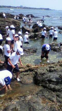 10時20分、麦崎に到着。早速、磯観察開始です。子どもたちの歓声が太平洋に響き渡っています。みんな満面の笑顔です。最高のお天気です。