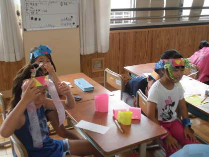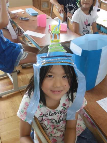 自分だけの「わっか」で作った王かんなどを発表し合い作品の好きなところを見つけていきます。