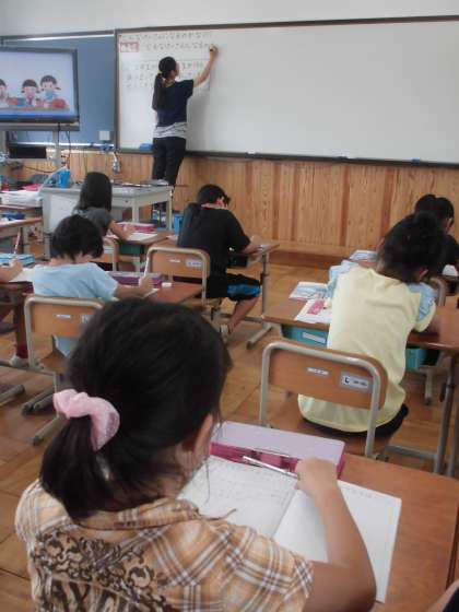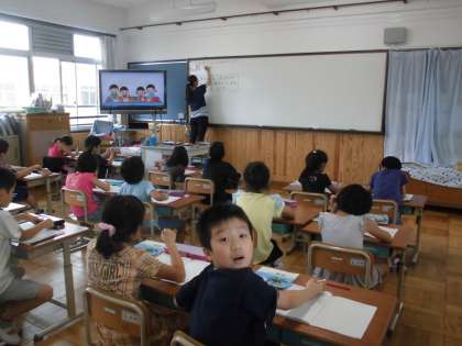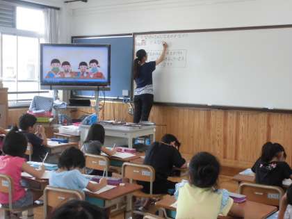 算数の時間に,「どんな計算になるのかな」を学習しています。今日は,何算になるのかわけも言えるよう考えていました。