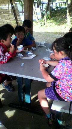 15時過ぎ無事みさきの家に帰ってきました。大野浜で記念の石も拾いました。休憩後プールに入り潮と砂をしっかり落としました。今年は、予定より活動が早く終わり、余裕があります。これからアイスクリームを食べて、お風呂までフリータイムを取ります。
