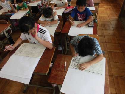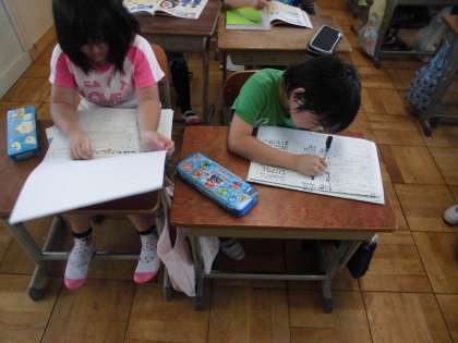 体育の時間に行った,「エンドボール」の学習のふり返りを教室でしていました。
