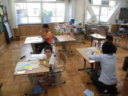 学活の時間に,七夕の飾りつけをしていました。