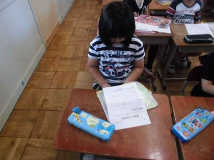 朝の会で,今日の予定や健康観察等をしていました。