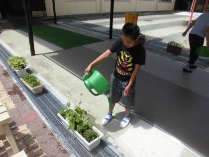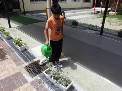 気温が高い中,校内の植物に水やりをしてくれました。