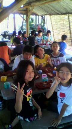 予定通り、昼食を食べ始めました。芝生広場の東屋でみさきの家の全景を見ながら別れを惜しんで食べています。このあと、退所式をして京都に向かいます。子どもたちは元気過ぎます。