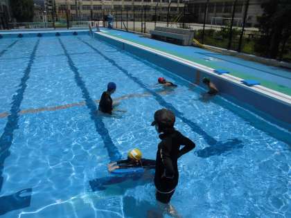 学習のはじめは,水慣れから始めます。