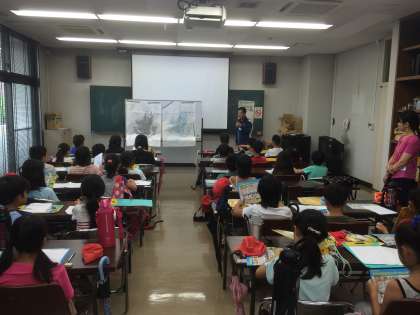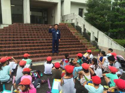 石田水環境保全センターで「くらしと水」について学習をしています。