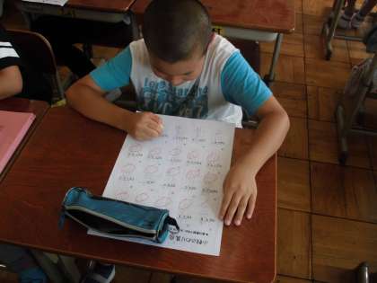 算数の時間に,「わり算」を学習しています。今日は,わり算の練習問題をしていました。