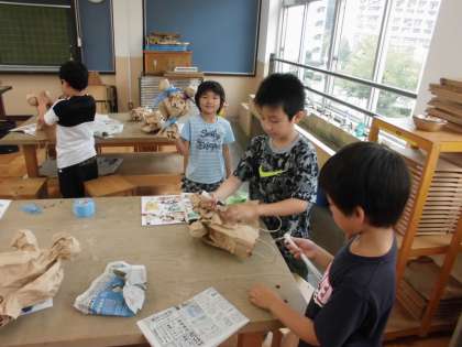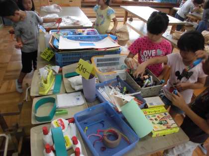 図画工作の時間に,「くしゃくしゃぎゅっ」を学習しています。今日は,作品づくりをしていました。