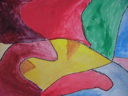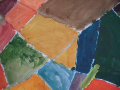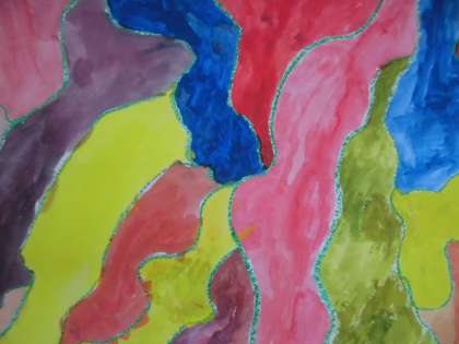 図画工作の時間に,「色・形・いいかんじ」を学習していました。色をまぜて,作品を作りました。