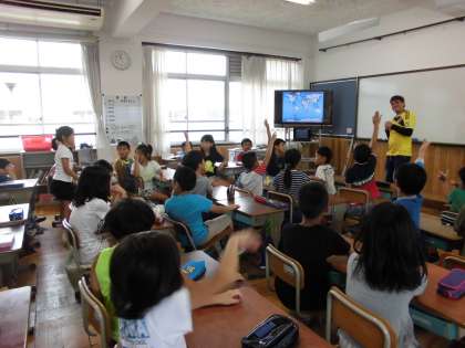子ども達は,今まで見たこともなかったコロンビアの方を前に,興味津々な様子で話を聞いていました。