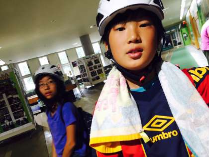 ヘルメットをかぶり準備完了。いよいよ登山に出かけます。