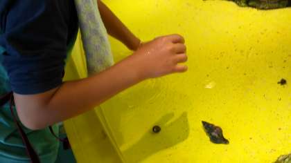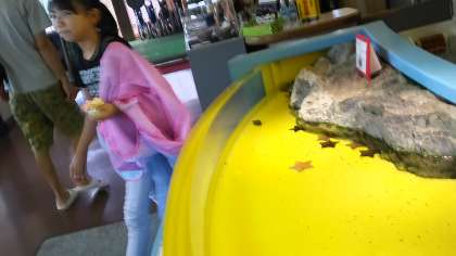 ヒトデふれあい水槽。恐る恐るさわってみました。