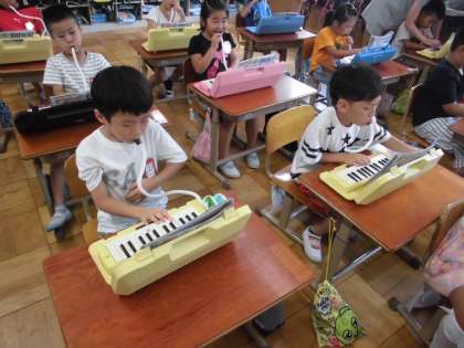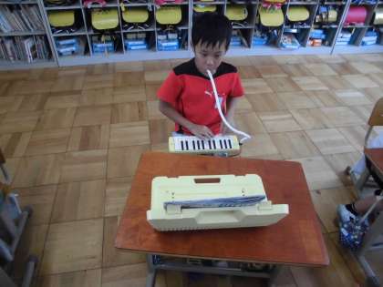 音楽の時間に,けんばんハーモニカの練習をしていました。