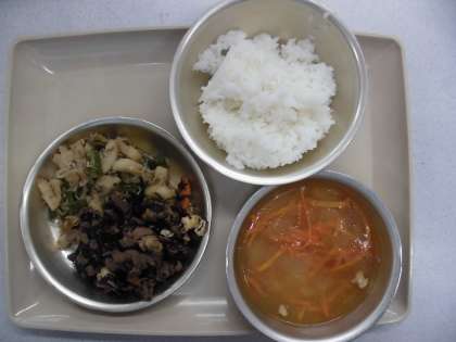 今日の給食の献立は,「ご飯」「冬瓜のくずひき」「牛肉とひじきの炒め煮」「伏見冬瓜とじゃこのたいたん」です。