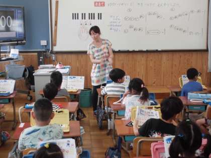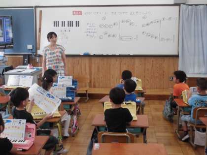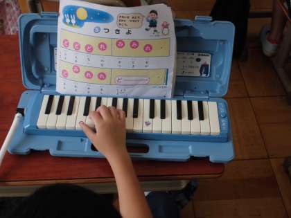 音楽の時間に,「けんばんハーモニカ」を学習しています。今日は,「つきよ」をけんばんハーモニカで演奏しいていました。