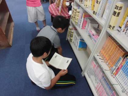 図書館で,夏休みに読む本を借りていました。