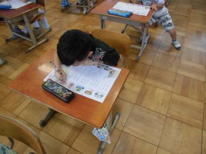 国語の時間に,「ひらがな」を学習していました。今日は,まとめのテストをしていました。