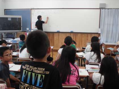算数の時間に,「比とその利用」を学習しています。今日は,練習問題をしていました。
