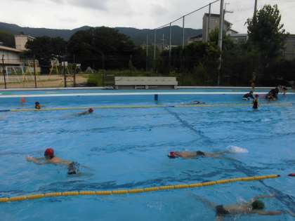 水慣れ終了後,長い距離を泳いでいました。