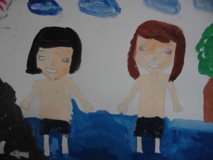 長期宿泊体験学習の思いでを,絵に表現しました。