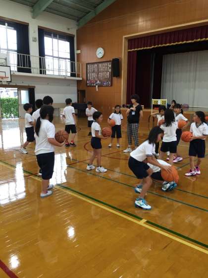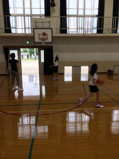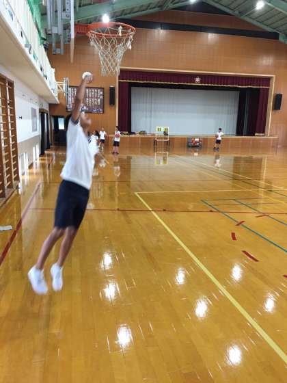今日も体育館で,汗びっしょりになりながら楽しそうに練習しています。